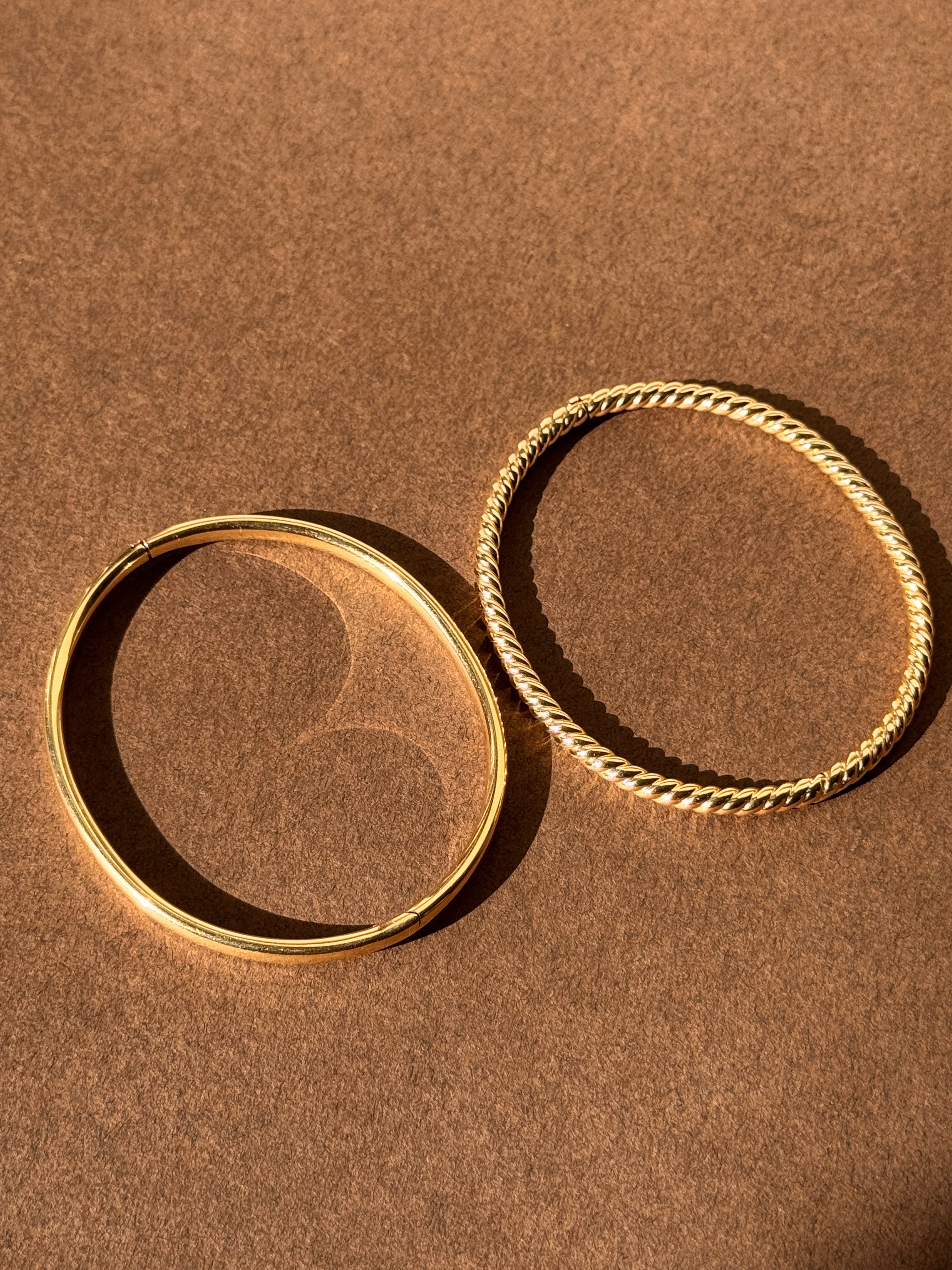 Lightweight and sleek, oval bangle is perfect worn solo or stacked in threes. Featuring a seamless, invisible double-lock system, it’s as secure as it is stylish. A true Namiri favorite.