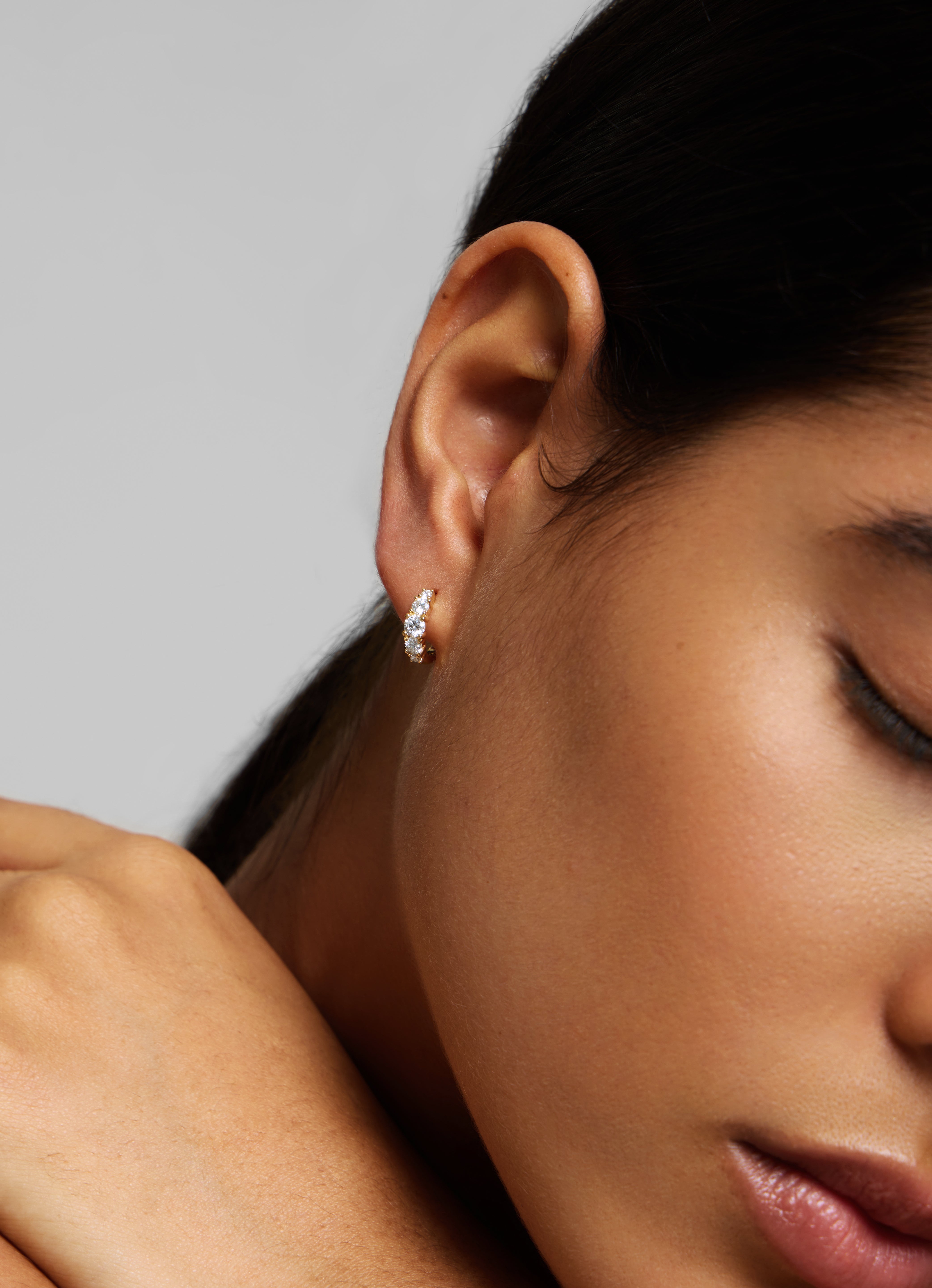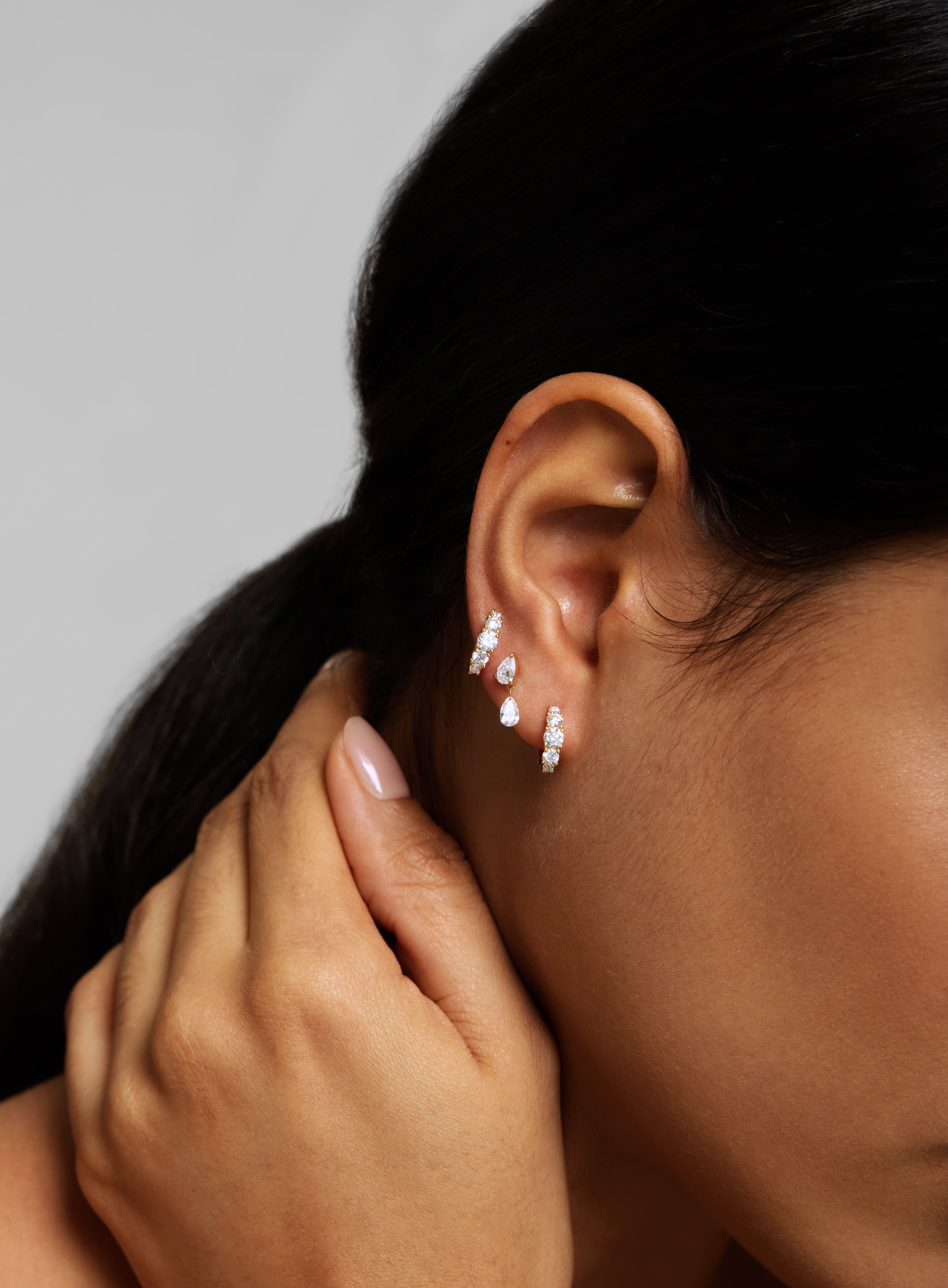 Not too subtle, not too bold — a sleek taper of diamonds that catches the light just enough, bringing a quiet edge from day to night. Confident in form, effortless in wear.